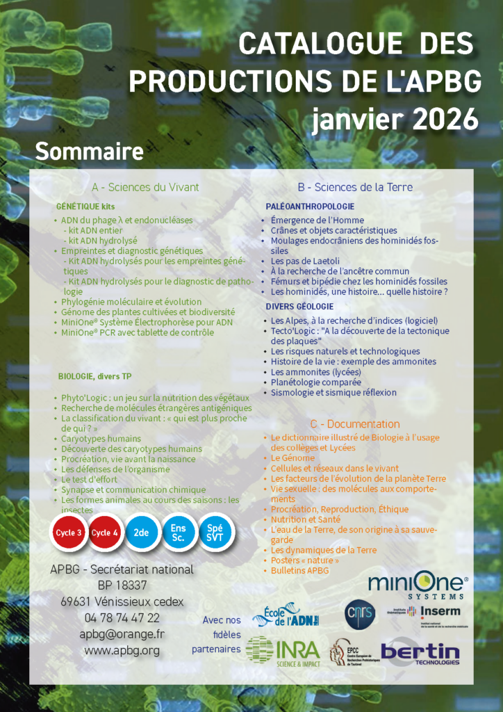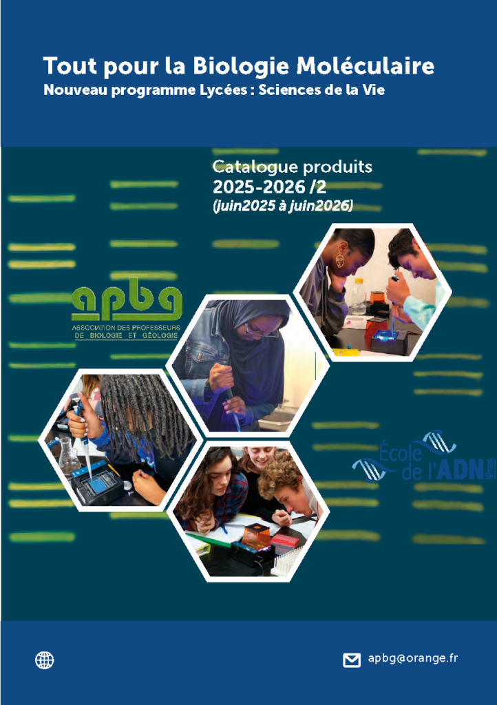 Le catalogue des produits MiniOne a été développé par l’équipe de l’École de L’ADN en partenariat avec l’APBG et MiniOne, dans le but d’aider d’avantage d’étudiants à comprendre les concepts de la biologie moléculaire et à acquérir une expérience pratique de l’expérimentation en biologie et en biotechnologie (SUR CE CATALOGUE de biologie moléculaire nos tarifs sont valables jusqu’au 31/05/2026. Les prix s’entendent TTC en euros, port non compris avec en sus 20-25 € de frais de livraison mais Franco de port : à partir de 2000 € TTC de commande).