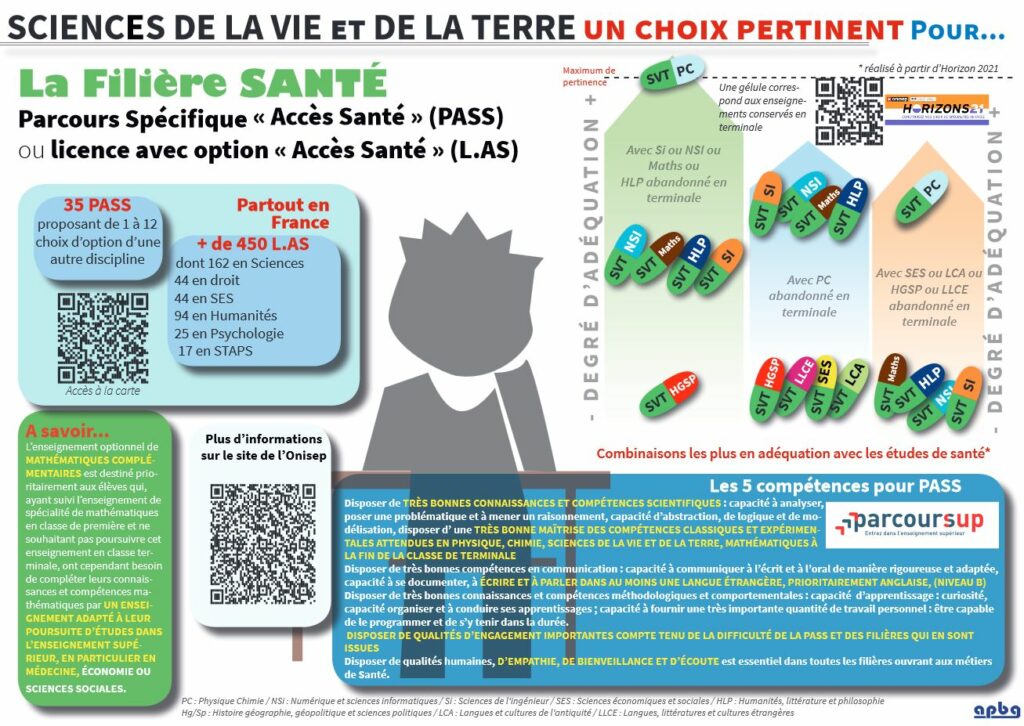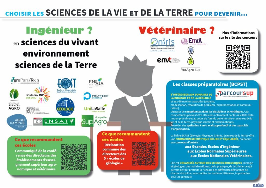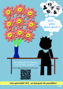 Voici un ensemble de quelques documents à afficher et montrer aux élèves pour les aider dans le choix de la spécialité SVT. Dans l’ENT et le dossier orientation, vous retrouverez également des diaporamas complet sur les filières agro, environnement, géologie et santé ainsi que des articles qui présentent les métiers liés à ces différentes voies d’orientations.