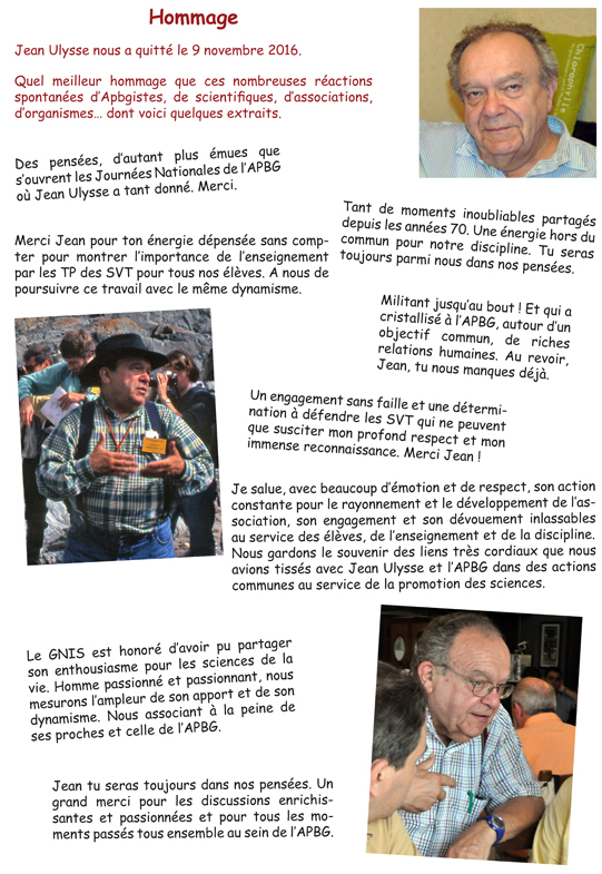 Jean Ulysse fût Président national de l’APBG de 1976 à 2002 et membre du Bureau national jusqu’en novembre 2016.